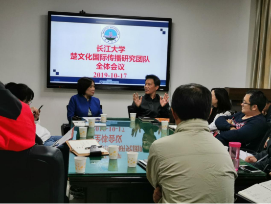 10月17日下午三点,长江大学“双一流”建设科研团队“楚文化国际传播研究团队”2019-2020学年第一学期第一次全体会议在文科大楼814如期举行。本次会议由田传茂教授主持,共包括三个主体环节:田教授宣布会议开始并做了有关楚文化国际传播研究的相关发言;谈宏慧院长和谢家成副院长分别讲话;全体参会教师和研究生进行了学术探讨。