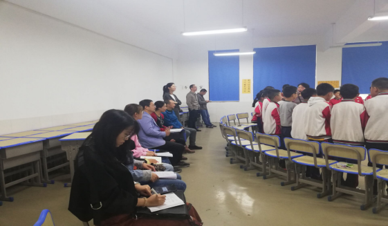 课后,实验中学的老师们,长江大学老师及创新小组成员进行了深入交流。首先由授课老师讲述自己此次课的设计目的与对此次课的感受。接着,老师们激烈讨论了课堂的不足及改进方法,创新小组成员虚心聆听并做好笔记。讨论结束后,指导老师还就此次观摩活动对创新项目小组成员安排了相应的任务,比如,进一步改编该剧本,使情节更丰富,语言更适合六年级学生的学习程度;参与设计更多课前暖场小游戏,从而使之达到更好的师生互动效果;参与设计剧本背景以及制作相应的道具,让师生更好的融入戏剧表演之中等。