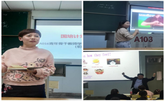 本次活动主要分为三大部分,首先观摩郑杰老师的一节九年级听说写新课型的录像,之后郑老师从设计课堂的背景、实施步骤和自己反思本次课堂的不足与学员们进行了分享。接下来是国培学员代表汪贵水和李洁老师的听说课展示,学员们充当学生,积极回答问题,课堂气氛十分热烈。最后由郑杰老师为两位学员评课,她高度肯定了学员们在设计课堂时的多角度思维方式,极富创造力,是基于核心素养设计的好课堂。