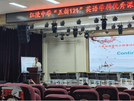 (通讯员 马欣悦)5月24日,江陵中学在学术报告厅成功举办了“五新121”优秀课例展示活动之英语组专场。本次活动由周蕾老师主讲,教材为人教版选择性必修第四册,主题为《Unit 1 Science Fiction--Continuation Writing》,时长40分钟。江陵中学英语教研组长陈应彬主持了此次活动,我院英语(师范)专业2021级和2023级的五名学生代表在马天雨老师的带领下参与观摩交流。