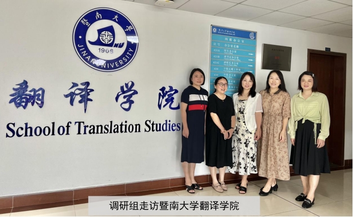 调研组李兰老师前往暨南大学珠海校区,参观了该校翻译学院,并与该院党委书记肖云以及胡文芝、田娟、李锦燕三位老师就翻译专业人才培养方案和学生实习实践进行了深入探讨。