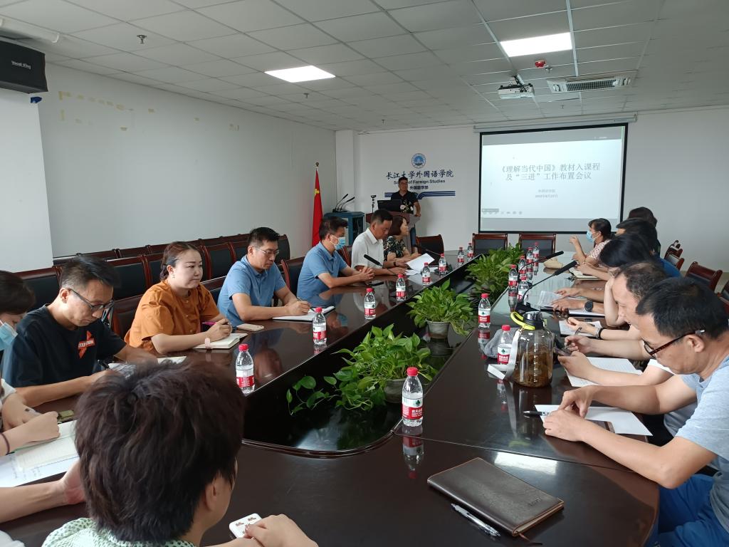 会上,乐鱼平台副院长彭沂介绍了《理解当代中国》系列教材“三进”工作的背景、目的和重要意义,强调了教育部和省教育厅的相关工作要求,详细讲解了乐鱼平台“三进”工作安排。副院长付小秋对研究生课程的“三进”工作进行了讲解与安排。院长谈宏慧在会上强调,要从外语教育的功能与价值高度,深刻认识“三进”工作的重要意义,通过《理解当代中国》多语种系列教材进课堂,加强新文科的建设,促进新时代外语人才培养工作,要坚定信念,把教材内容深度融入专业教学,培养更多能讲好中国故事的优秀外语人才。
